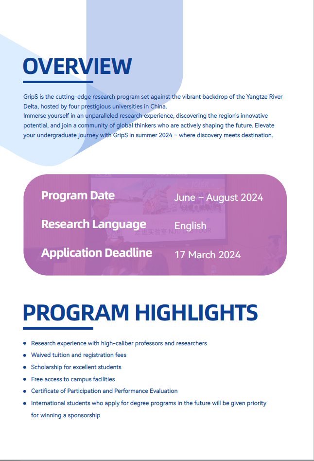 2024 Summer | Global Research Immersion Program for Young Scientists at Fudan University