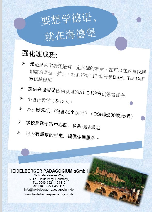 请有兴趣赴海德堡学习德语的同学关注以下海报: