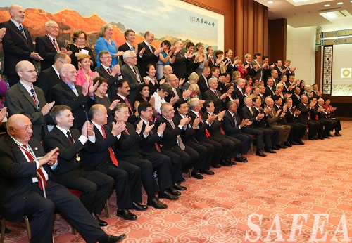 2013年9月30日,国务院总理李克强在人民大会堂亲切会见了荣获2013年度中国政府“友谊奖”的外国专家以及他们的亲属。李克强代表中国政府和人民,向获奖外国专家表示热烈祝贺,同时向在华工作的全体外国专家和国际友人及其亲属表示崇高敬意。此前一天的9月29日,2013年度中国政府“友谊奖”颁奖大会在北京人民大会堂隆重举行,国务院副总理马凯向获奖外国专家颁奖并讲话。我校David Waxman教授荣膺今年国家友谊奖,赴京参加了上述活动。
