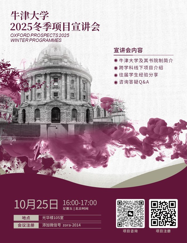 牛津大学寒假项目和学年项目及10月25日宣讲会通知