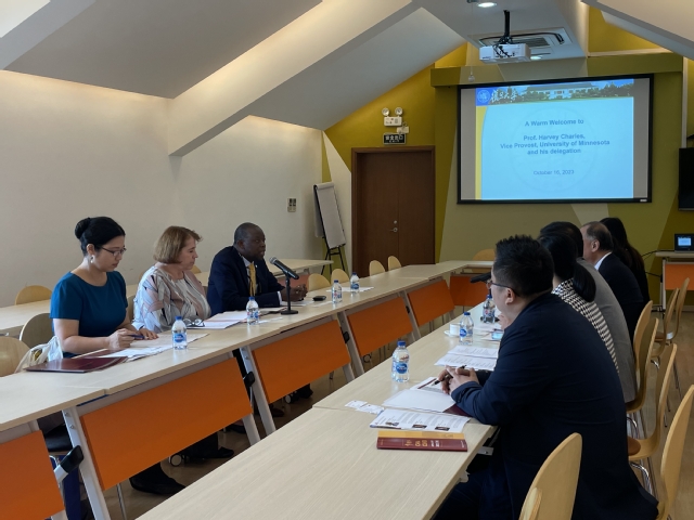 2023年10月16日上午,张人禾副校长在马锦明楼302会议室接待了明尼苏达大学全球项目与战略联盟副教务长哈维·查尔斯(Dr. Harvey Charles)一行。药学院戚建平副院长、药学院孙涛副教授、国际合作与交流处许烨芳副处长等陪同接待了明尼苏达大学代表团。此次访问是哈维·查尔斯副教务长上任以来的首次国际出访。