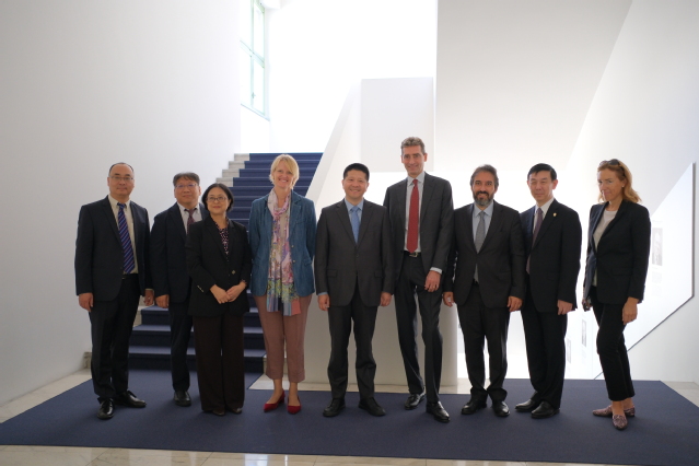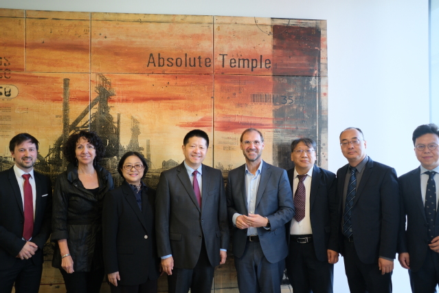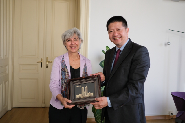 10月16日,裘新一行访问卢森堡大学,会见校长言斯?克莱赛尔(Jens Kreisel)和副校长玛丽-海伦娜?乔宾(Marie-Helene Jobin)。双方表示,在两校友好合作基础上,将进一步拓展绿色经济、生命医学等领域的合作交流。