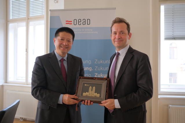 10月13至14日,裘新一行在奥地利访问维也纳大学,会见副校长马努艾拉?巴卡瑞妮(Manuela Baccarini)。裘新表示,自2019年两校签署战略合作协议以来,双方共同开展了丰富多彩的线上活动与学术研讨会,希望国际旅行恢复之后两校能进一步推进战略伙伴关系,增进线下交流与人员互访。裘新还访问了奥地利学术交流署(OeAD)总部,会见执行总监雅各布?蔡礼思(Jakob Calice);访问欧亚太平洋大学联盟(Eurasia-Pacific Uninet),会见联盟主席沃夫迪特?劳施(Wolf-Dieter Rausch)等。